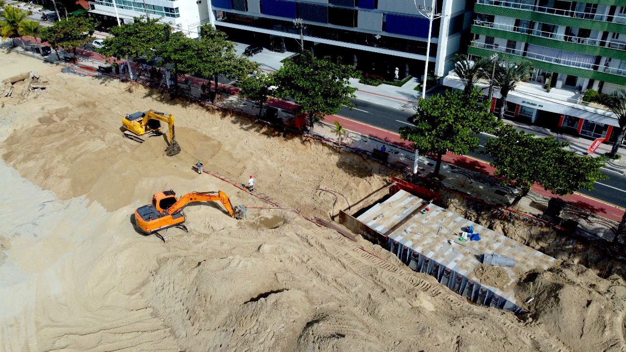 Execução da obra da macrodrenagem avança na Av. Atlântica com a Rua 1001